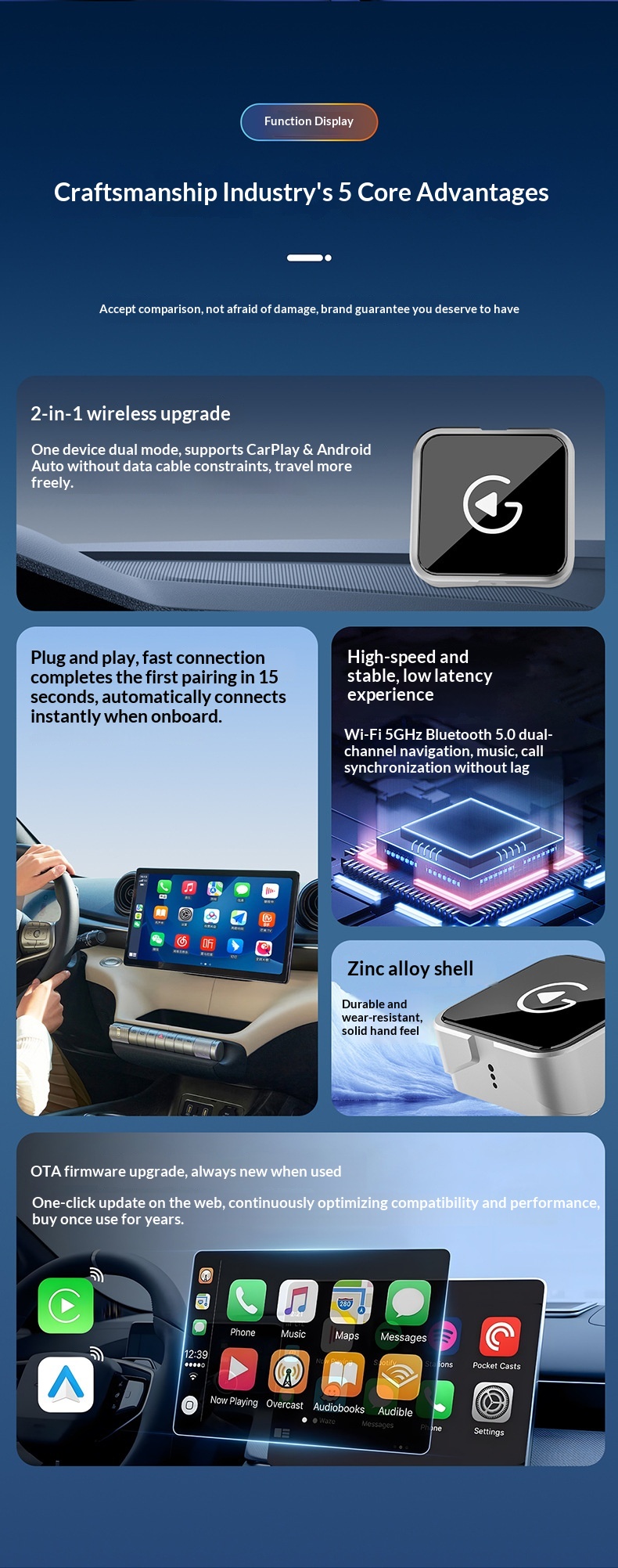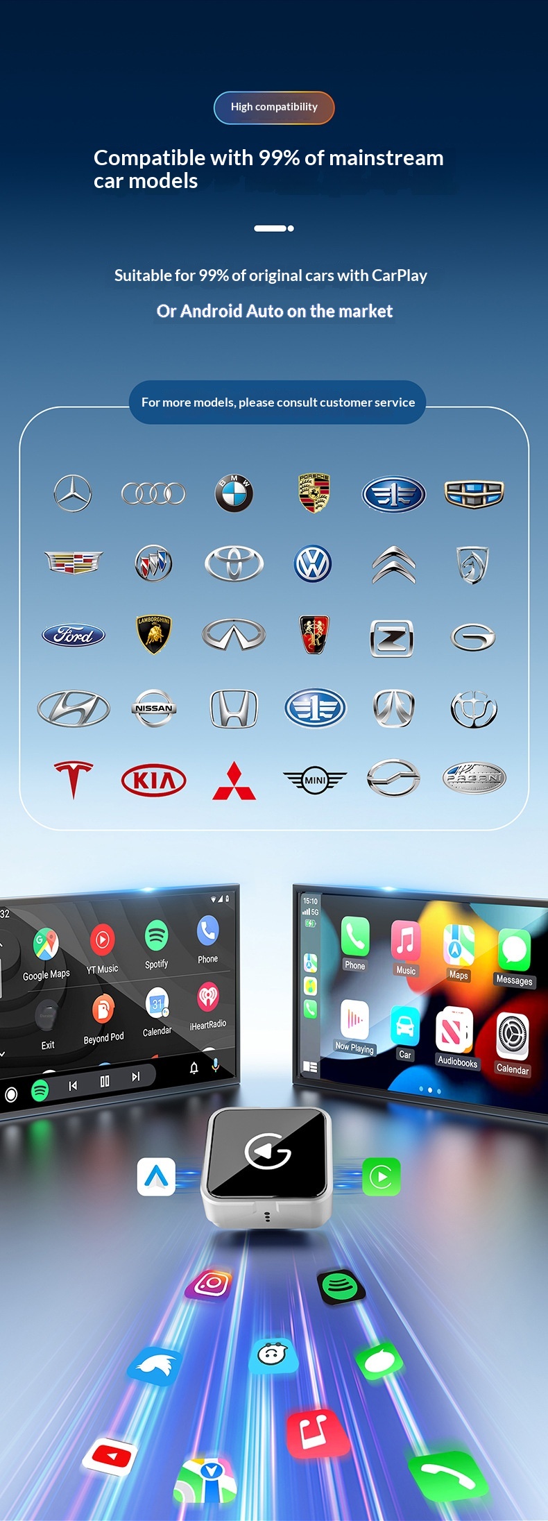 Wireless CarPlay Adapter For Wired To Wireless Conversion